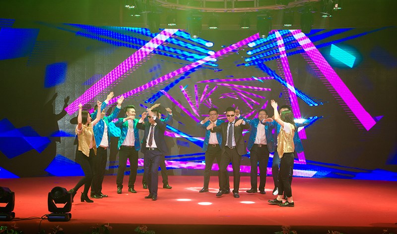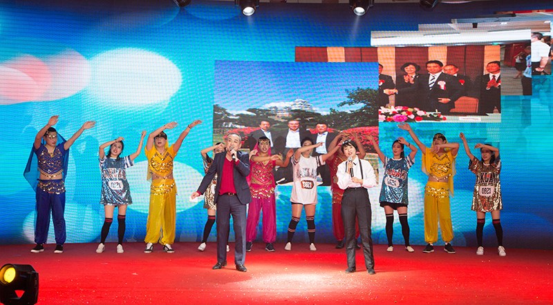一開場(chǎng),歌曲《我們不一樣》就點(diǎn)燃了全場(chǎng),來(lái)自集團(tuán)總部4名演唱者,略帶金屬質(zhì)感的嗓音,深情唱出集團(tuán)20年艱苦創(chuàng)業(yè)中,聯(lián)橋人不一樣的拼搏,不一樣的意志,不一樣的風(fēng)采,不一樣的兄弟情。尤其是當(dāng)1500名聯(lián)橋人揮舞著旗幟拍攝全家福的壯觀畫面呈現(xiàn)時(shí),身為聯(lián)橋人的驕傲和自豪感油然而生。紡織服裝行業(yè)的情景劇《感覺自己棒棒噠》,表演輕松愉悅、風(fēng)趣幽默,歌聲傳達(dá)出紡織服裝行業(yè)的美女們,在緊張工作之中保持飽滿的精神狀態(tài)和積極樂觀的心態(tài),更表現(xiàn)著聯(lián)橋人追逐時(shí)尚,逐鹿世界秀場(chǎng)的風(fēng)采。塑料新材行業(yè)的歌曲《驕傲的少年》青春洋溢,4名帥氣小伙子的堅(jiān)定歌聲,展現(xiàn)了他們開拓進(jìn)取的精神。人力資源行業(yè)帶來(lái)的歌伴舞《天邊》,用渾厚的聲音,闡述著追逐夢(mèng)想、勇攀高峰的精神;行業(yè)部長(zhǎng)們用“聯(lián)橋老兵”精神演繹了《新長(zhǎng)征路上的搖滾》,盡顯搖滾的力量,撕裂的吶喊,縱情的釋放,給人以心靈的震撼。在歌舞串燒《蹦沙卡拉卡》中,來(lái)自日本上市人力資源公司的CEO松本先生驚喜亮相,用一首《朋友》講述著與聯(lián)橋人的長(zhǎng)久友誼。