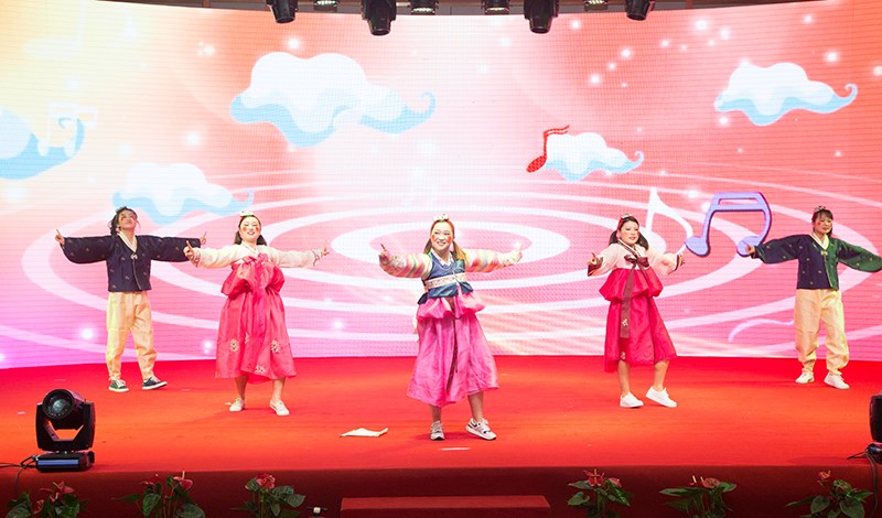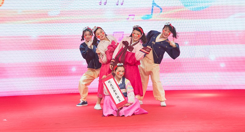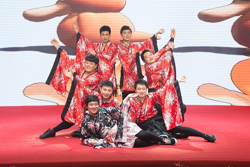 隨著動(dòng)感的音樂,開場(chǎng)舞《Sugar》熱血豪邁、活力十足,一開場(chǎng)就引得全場(chǎng)矚目,贏得陣陣喝彩。五位主持人舞動(dòng)著節(jié)拍,閃耀登場(chǎng),在喜慶歡樂的氛圍中拉開了晚會(huì)的帷幕。