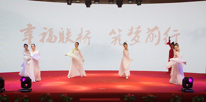 總部的古典舞《采薇》大有漢唐樂舞“翹袖折腰”的舞姿形象,古典韻味十足又有聯(lián)橋賦予的時(shí)代新創(chuàng)意;紡織服裝行業(yè)的墨舞《筑夢(mèng)聯(lián)橋》也是如此,把舞、樂、書、畫熔于一爐,在情景交融、人屏互動(dòng)中,“幸福聯(lián)橋 筑夢(mèng)前行”八個(gè)大字躍然眼前,當(dāng)“聯(lián)橋集團(tuán)明天更美好”出現(xiàn)在屏幕上時(shí),現(xiàn)場(chǎng)掌聲雷動(dòng)。