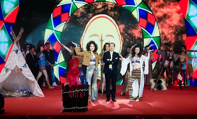 全場(chǎng)的最高燃點(diǎn),出現(xiàn)在時(shí)尚秀《吉普賽女郎》中,原始森林、草原、篝火、帳篷的場(chǎng)景,讓人置身奇幻異域,身著波西米亞風(fēng)格服裝的聯(lián)橋模特們,在絢麗的燈光中,踏著節(jié)奏的鼓點(diǎn),時(shí)尚的步伐,一一出場(chǎng)。超高的顏值,炫酷的造型,令人目不暇接,盡情共享聯(lián)橋時(shí)尚。當(dāng)觀眾們?cè)诿垒喢缞J中沉醉時(shí),慕镕鍵董事長(zhǎng)在聚光燈的照耀下,在萬(wàn)眾矚目中,在模特的擁簇下閃亮登場(chǎng),盡顯聯(lián)橋時(shí)尚總引領(lǐng)者的奪目風(fēng)采。緊接著,他帶領(lǐng)全體模特跳起充滿異域風(fēng)情的舞蹈,輕松的節(jié)奏,歡快的舞步,引發(fā)全場(chǎng)陣陣尖叫,齊聲喝彩。此時(shí)意猶未盡,又邀請(qǐng)日本貴賓上場(chǎng),與全場(chǎng)觀眾一起搖擺,掀起了晚會(huì)最高潮。