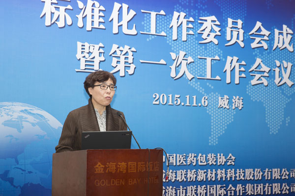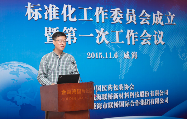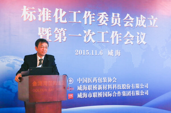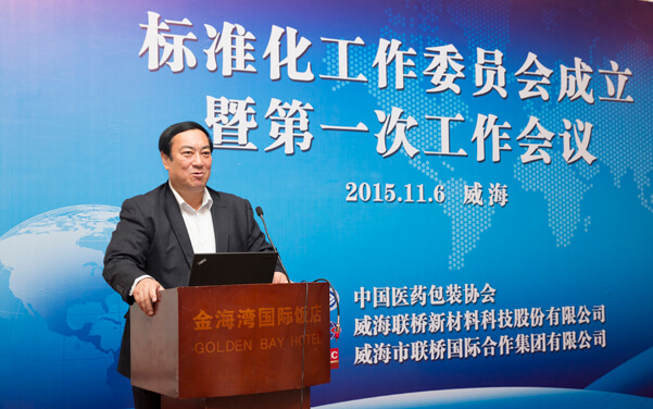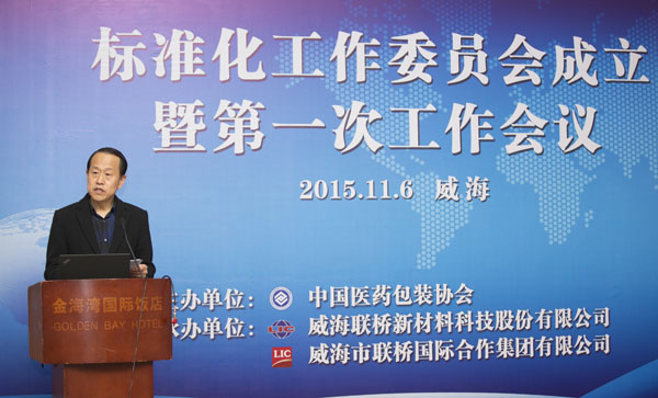 2015年11月6日,中國醫(yī)藥包裝協(xié)會標(biāo)準(zhǔn)化工作委員會成立暨第一次工作會議在金海灣國際飯店金海灣廳召開。會議由中國醫(yī)藥包裝協(xié)會主辦,威海市聯(lián)橋國際合作集團有限公司、威海聯(lián)橋新材料科技股份有限公司承辦。國家藥典委員會綜合處處長洪小栩、中國醫(yī)藥包裝協(xié)會副會長紀(jì)煒、秘書長蔡弘等相關(guān)領(lǐng)導(dǎo)、專家,威海聯(lián)橋集團董事長慕镕鍵、威海聯(lián)橋新材料科技股份有限公司總經(jīng)理慕衛(wèi)波等共計120余人參加會議。中國醫(yī)藥包裝協(xié)會副會長紀(jì)煒主持會議。威海高技術(shù)產(chǎn)業(yè)開發(fā)區(qū)黨工委副書記王剛出席會議。